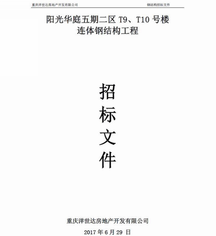 陽光華庭五期二區T9、T10號樓連體鋼結構工程招標文件