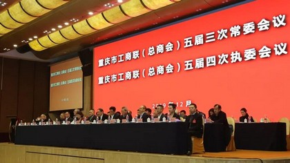 重慶市工商聯(lián)(總商會)五屆三次常委會議、五屆四次執(zhí)委會議于2019年12月26日下午在金源酒店隆重召開。市委統(tǒng)戰(zhàn)部領導、駐市委統(tǒng)戰(zhàn)部紀檢監(jiān)察組負責人和市委統(tǒng)戰(zhàn)部經(jīng)濟處負責人;市工商聯(lián)(總商會)全體會領導、常委、執(zhí)委;市總商會名譽會長、顧問等共計300余人參加,集團公司董事長楊勇參加了會議,本次會議由市委統(tǒng)戰(zhàn)部副部長、市工商聯(lián)黨組書記向遠春主持召開。