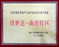 ? 2020年10月,洋世達(dá)·南濱特區(qū)項(xiàng)目被重慶市房地產(chǎn)開(kāi)發(fā)協(xié)會(huì)評(píng)為“2020重慶房地產(chǎn)行業(yè)產(chǎn)品兌現(xiàn)力推介樓盤(pán)”